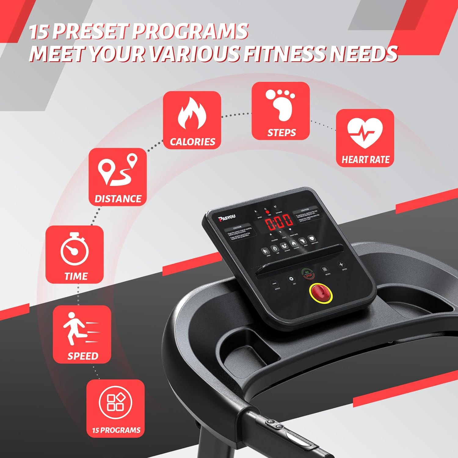 Introducing the PASYOU Treadmill with Incline – the ultimate at-home fitness solution for walking, running, and jogging. This foldable treadmill is designed with convenience and performance in mind, making it perfect for any home gym.