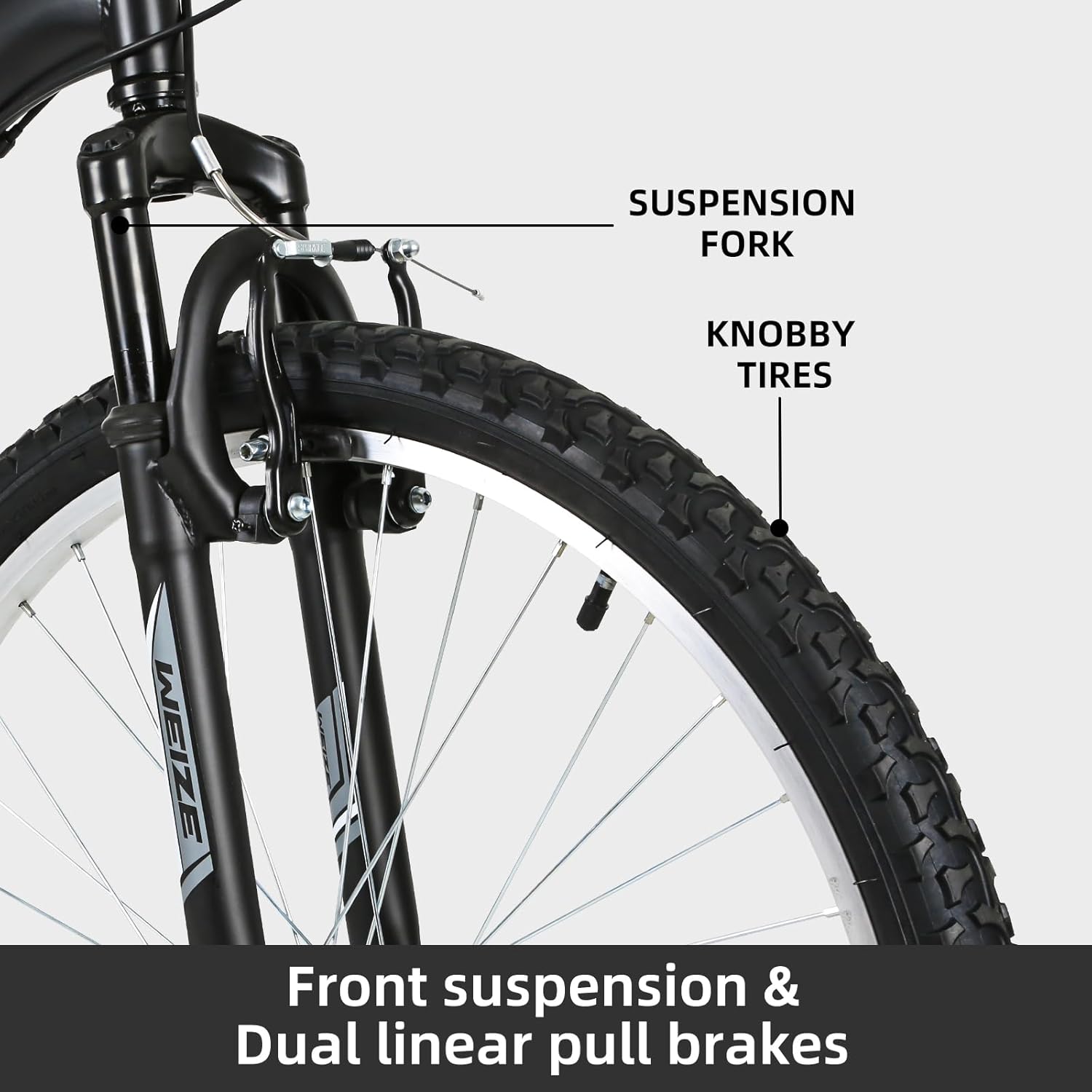 Equipped with a suspension fork, this MTB bicycle absorbs shocks and bumps for a smoother ride. Choose from a range of sleek colors to match your personal style and hit the trails in style with the WEIZE Mountain Bike. Order yours today and start your next cycling adventure!
